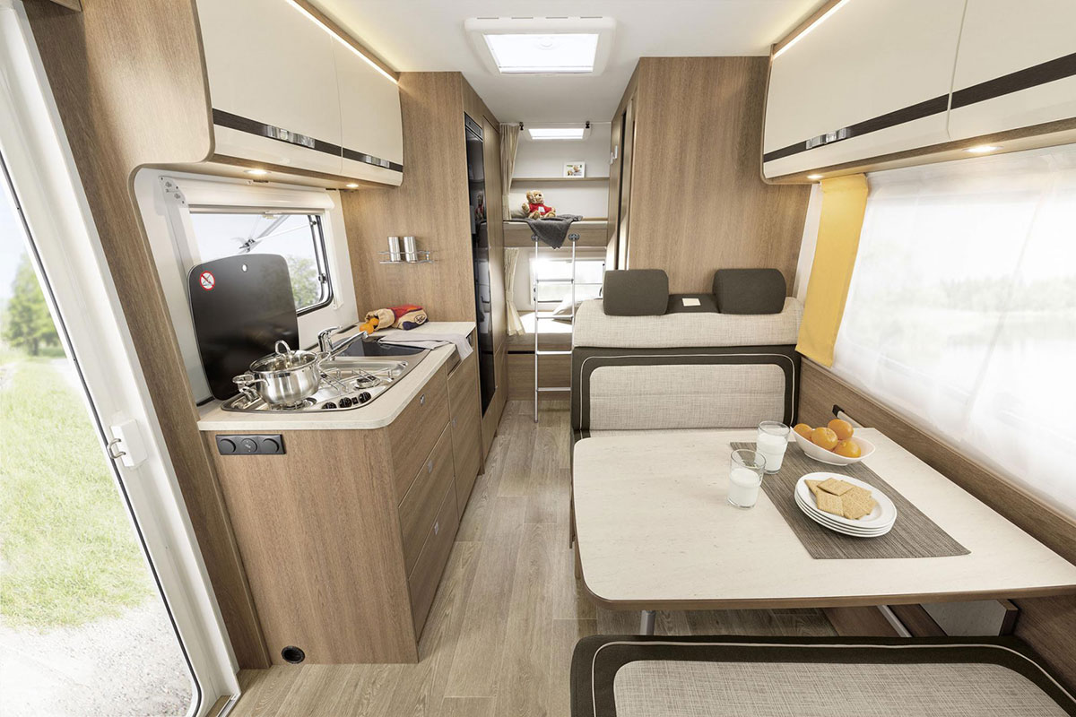 Vehicle ideal per a famílies, disposa de 6 places per a passatgers i 5 per dormir. Un llit doble, saló convertible en llit i 2 lliteres. Motor de 120 CV, massa màxima autoritzada de 3495 t i càrrega addicional de 634 kg.